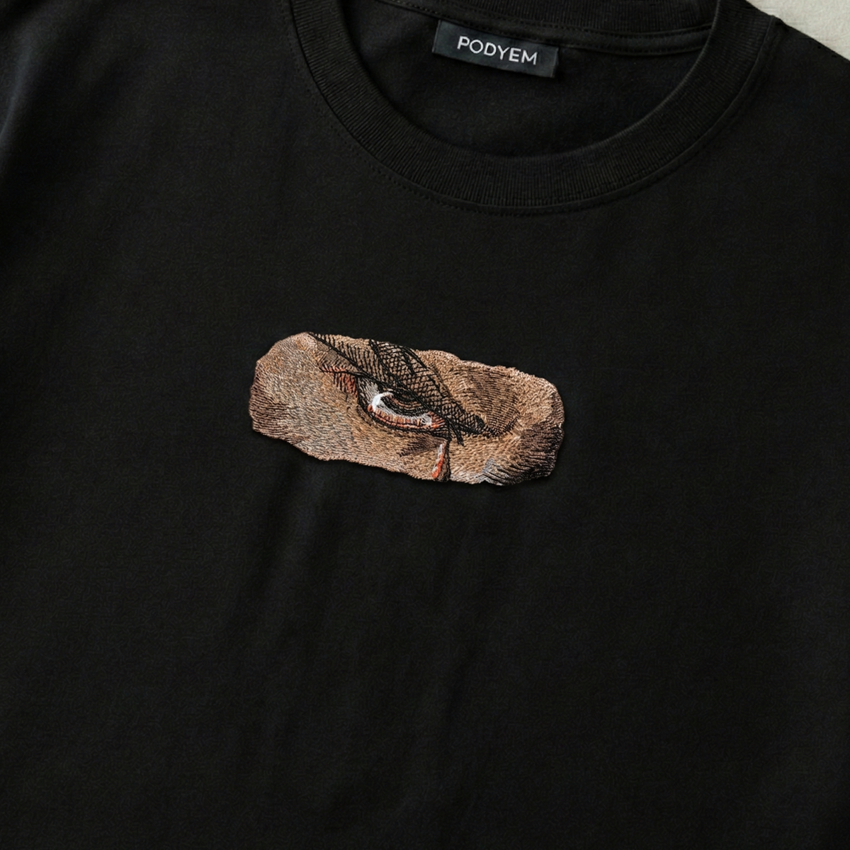Yaklaşık +30.000 bin vuruş nakışlı ürünlerde 30/2 çift dikiş 240 GSM Tshirt kullanılır. Hem 24/1 hem 30/2 Tshirtler, %100 pamuk, oversize ve nefes alan yapıdadır.
