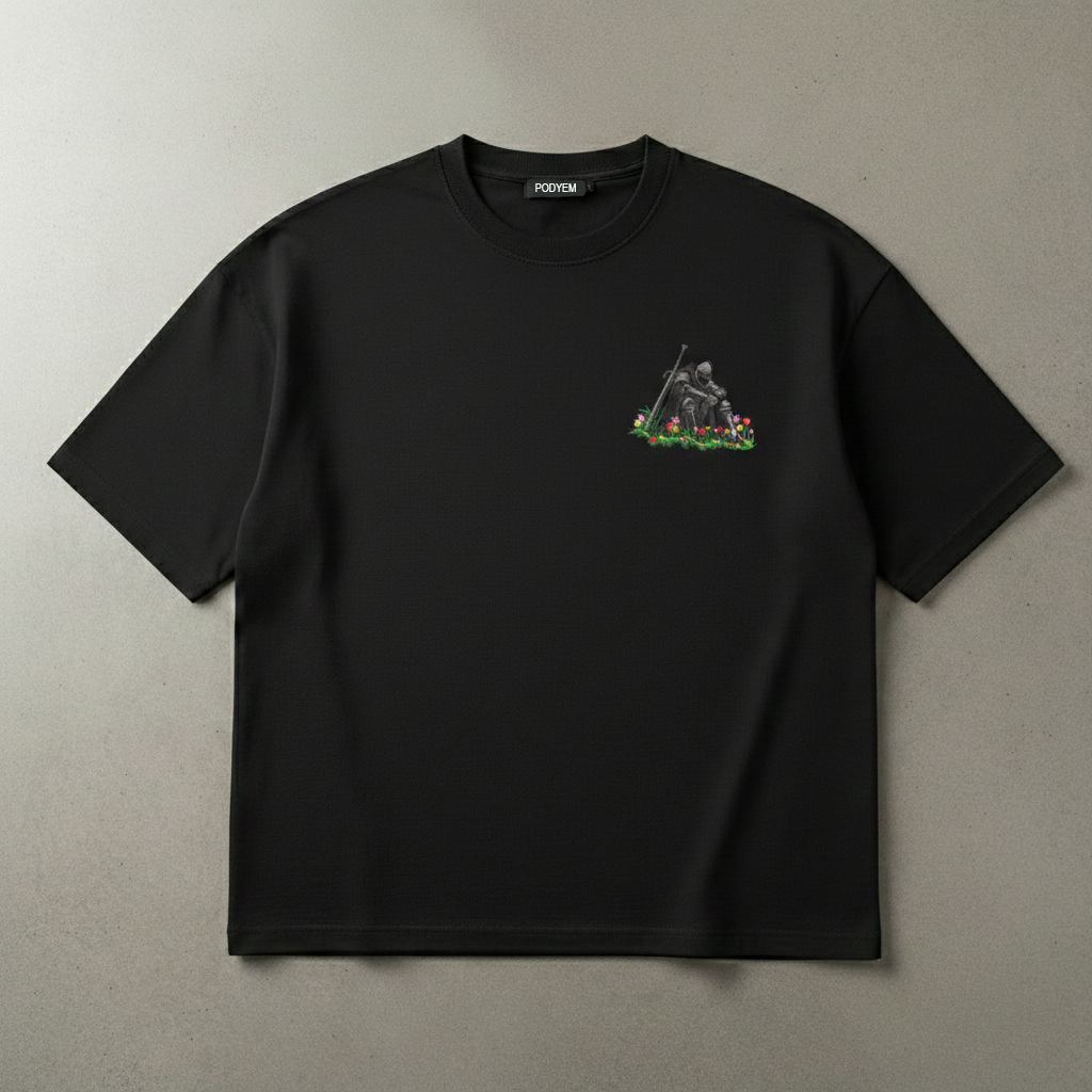 0 Yorgun Şövalye Nakışlı Oversize Tshirt için 2 değerlendirme